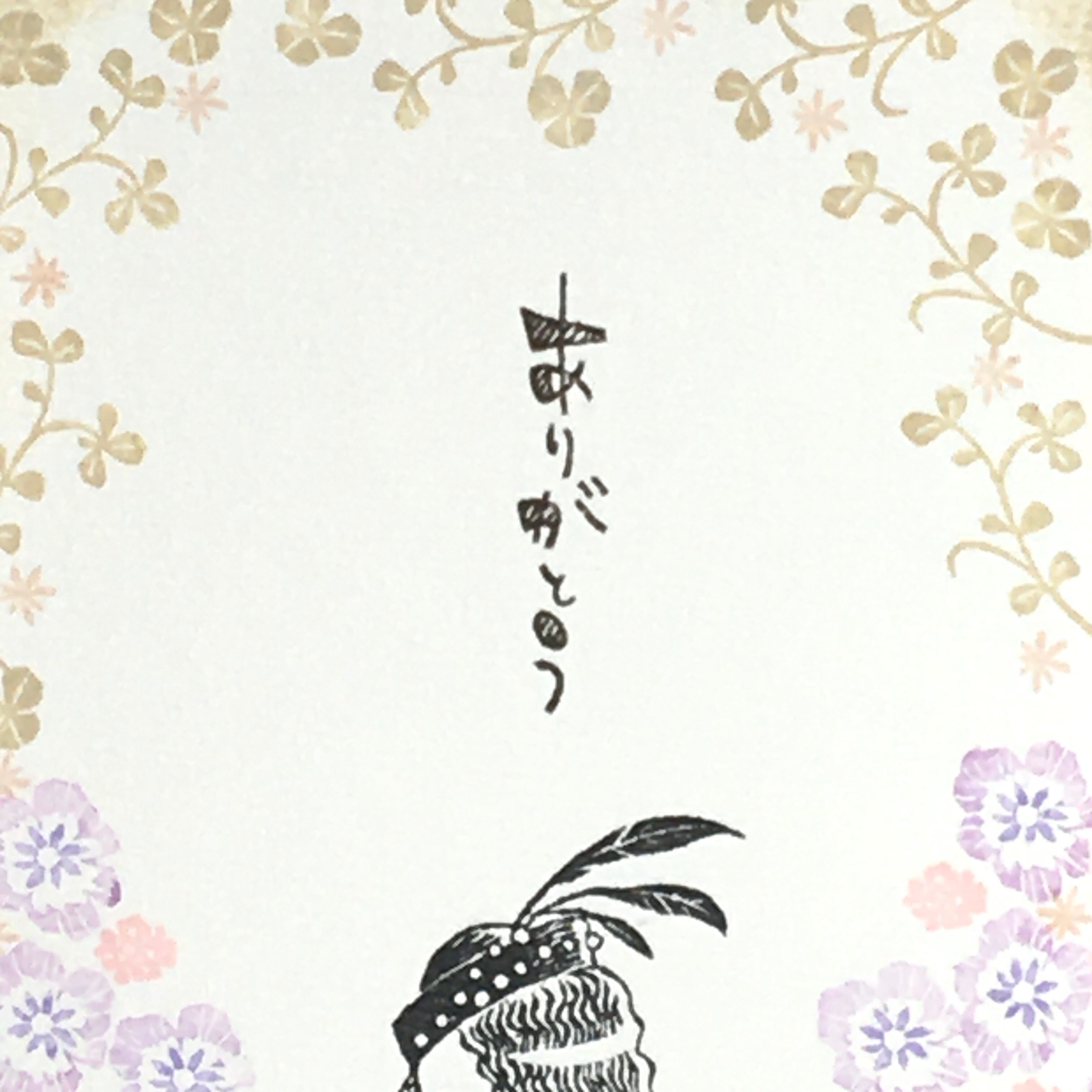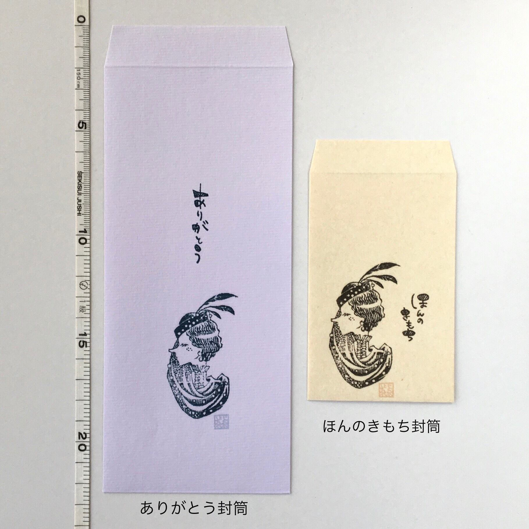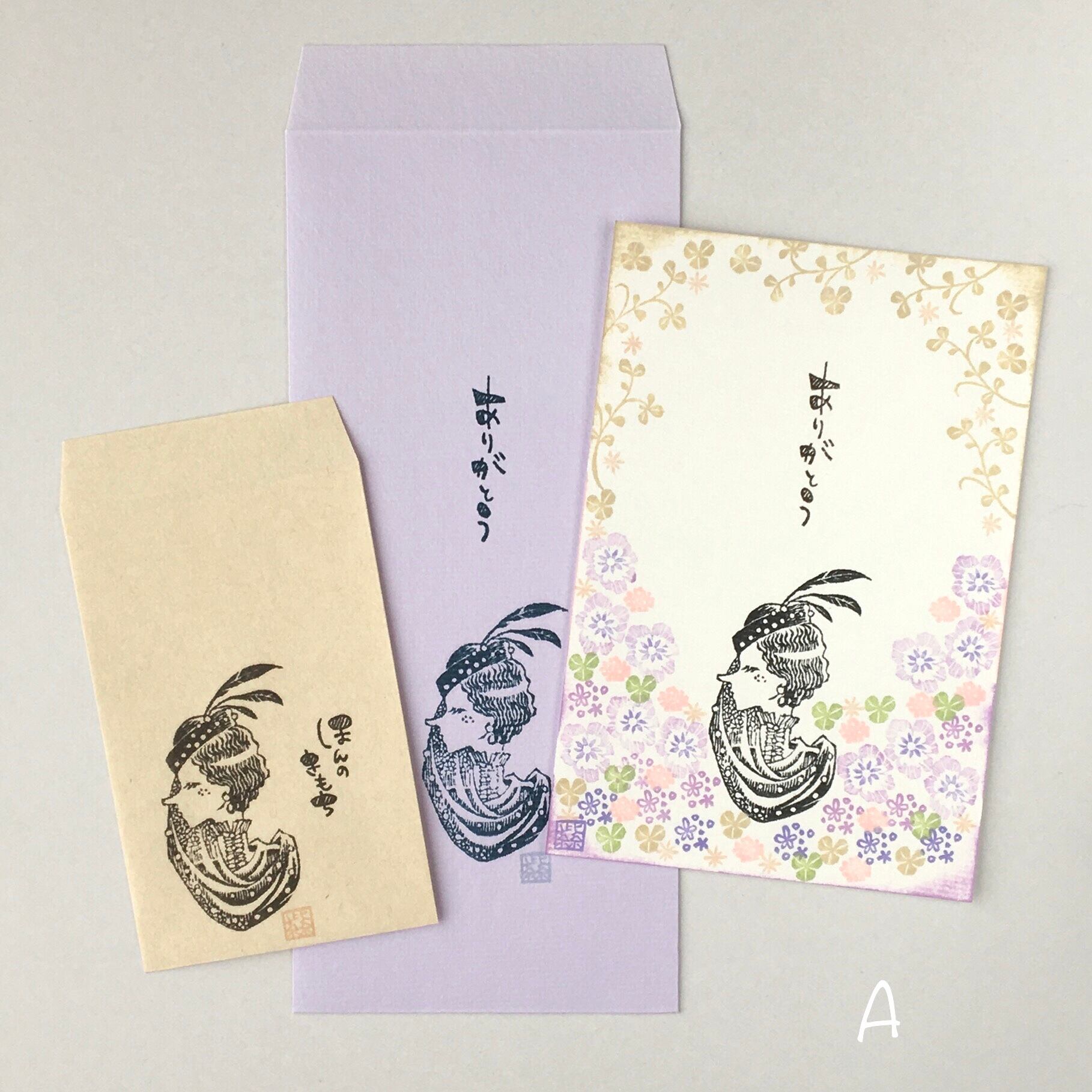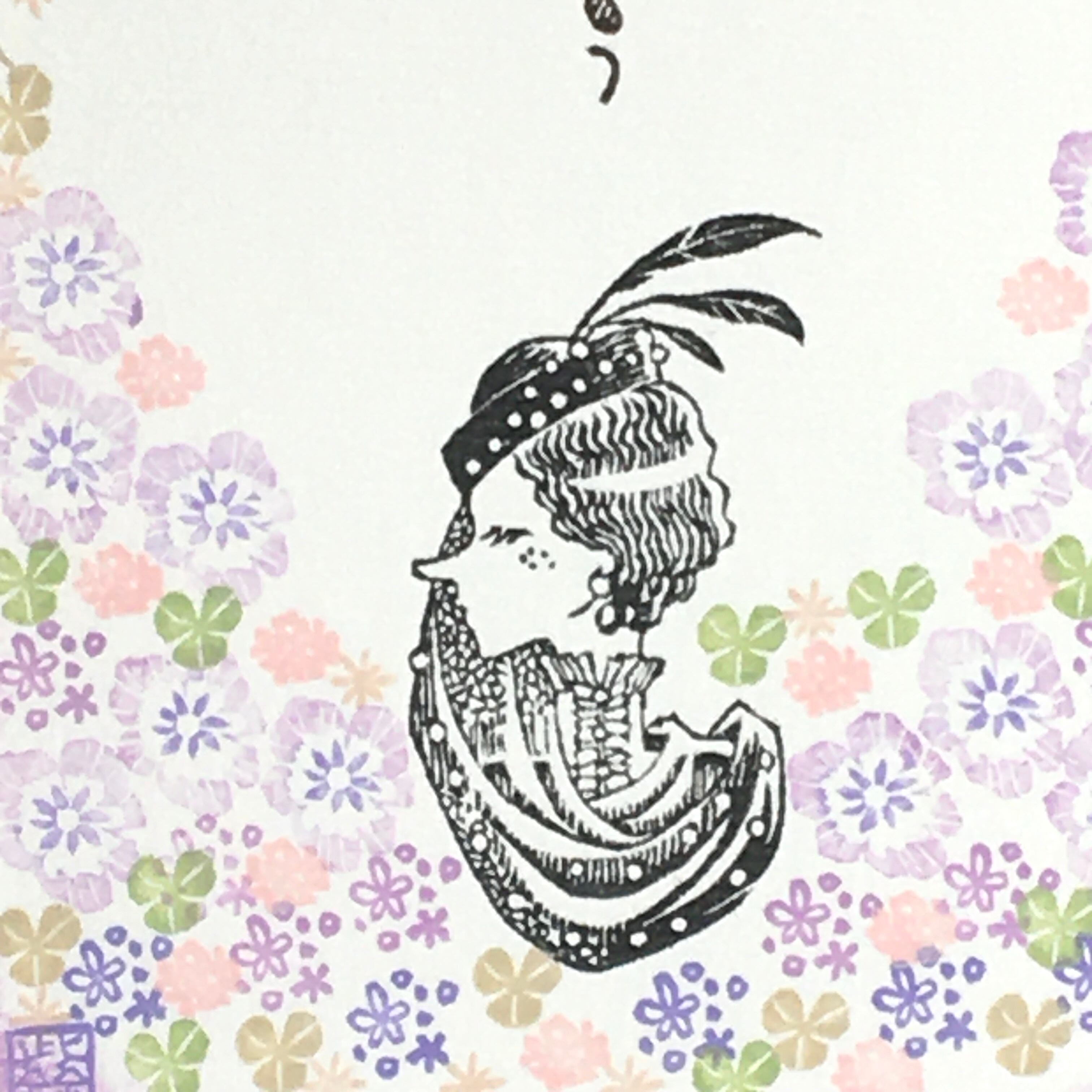 英国風女子の消しゴムはんこを使った、ありがとうポストカードです。