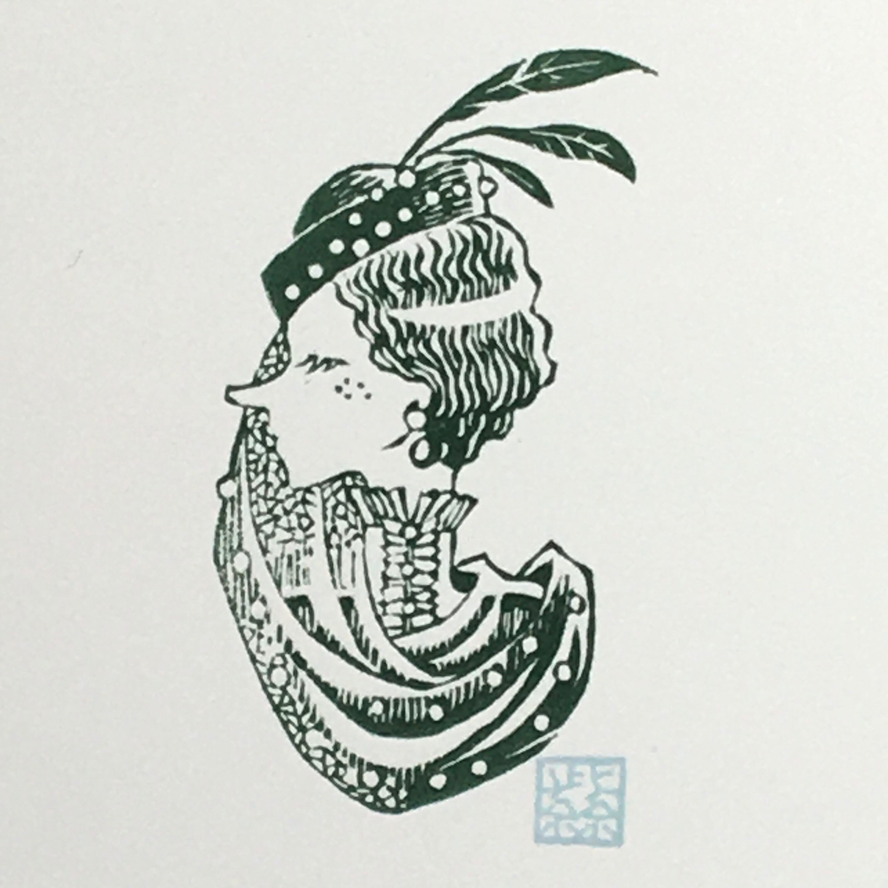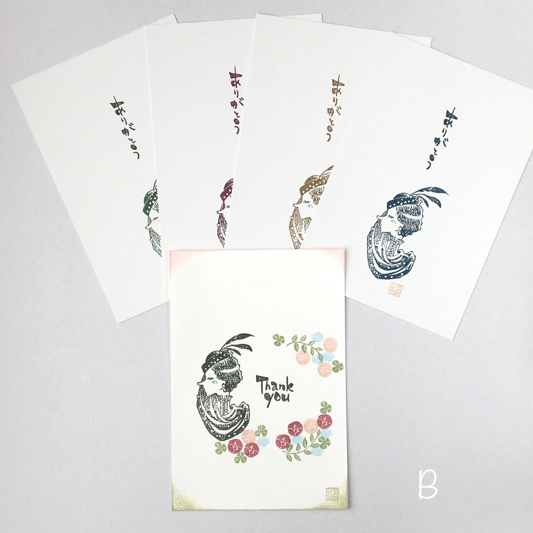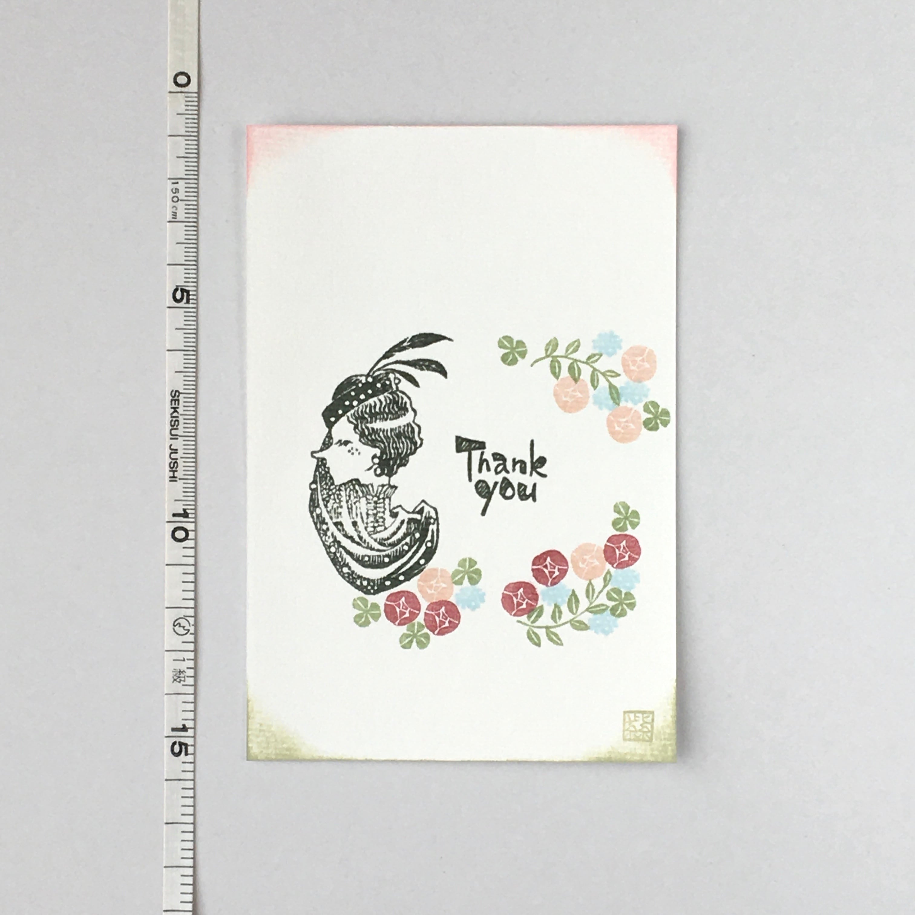 英国風女子の消しゴムはんこを捺した、Thank youポストカードです。