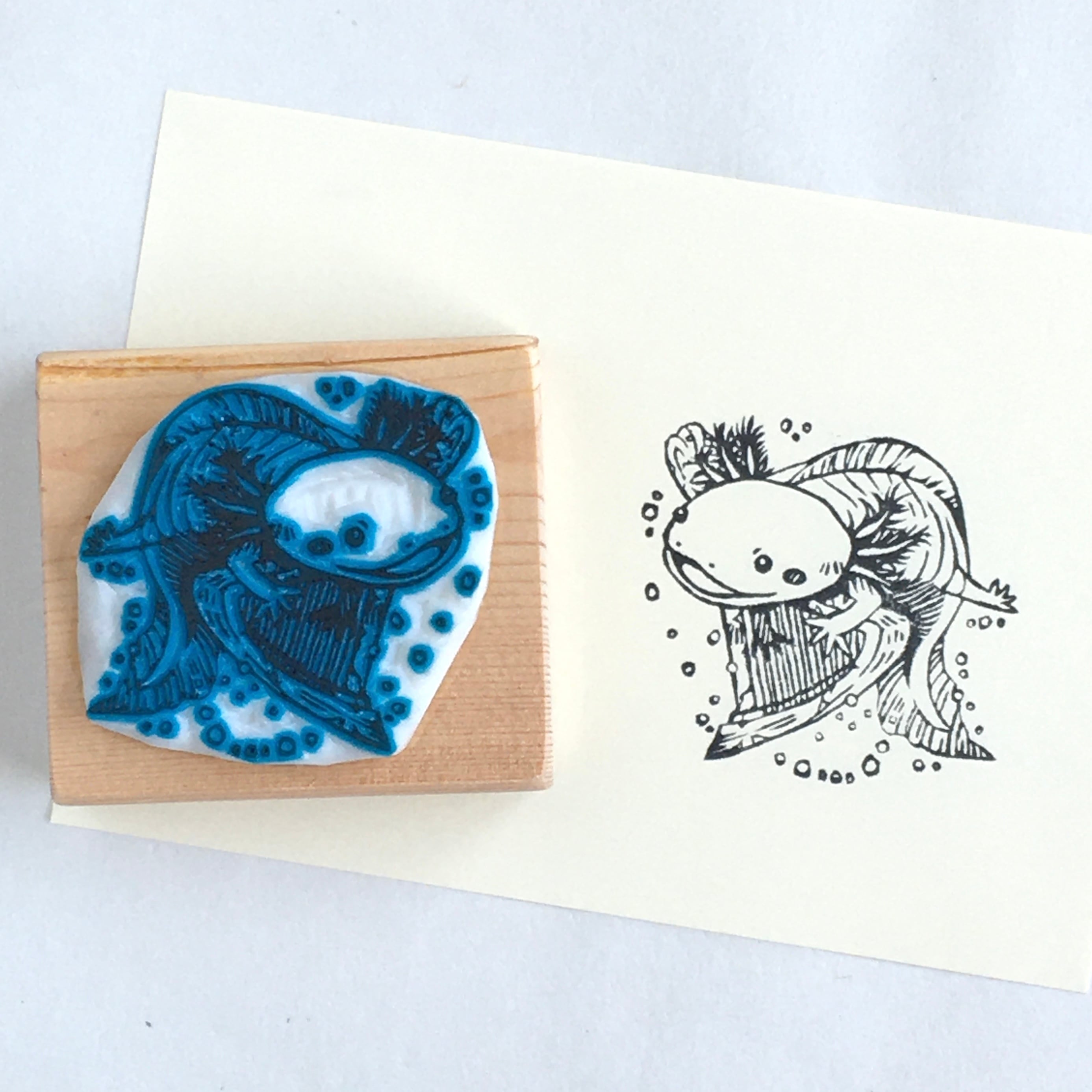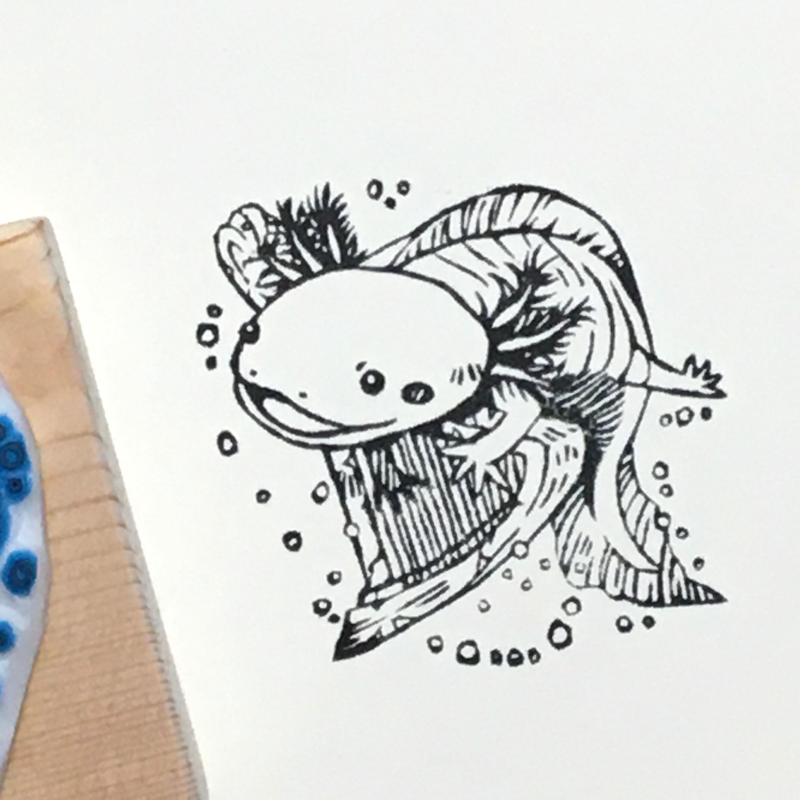 ウーパールーパーの消しゴムはんこです。