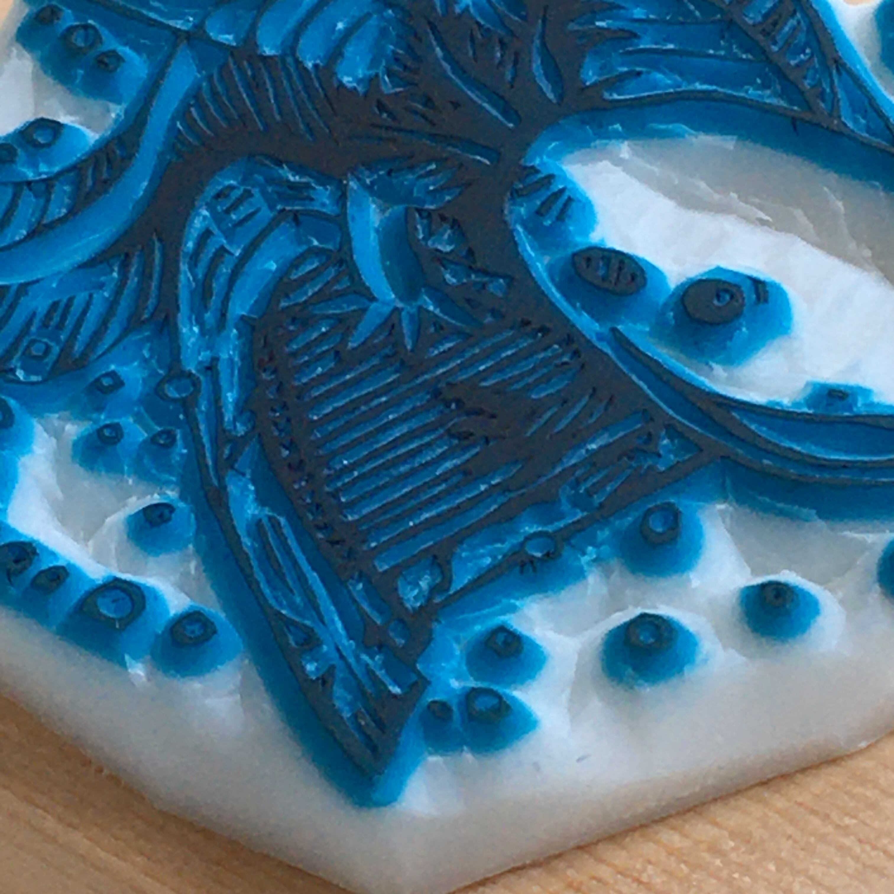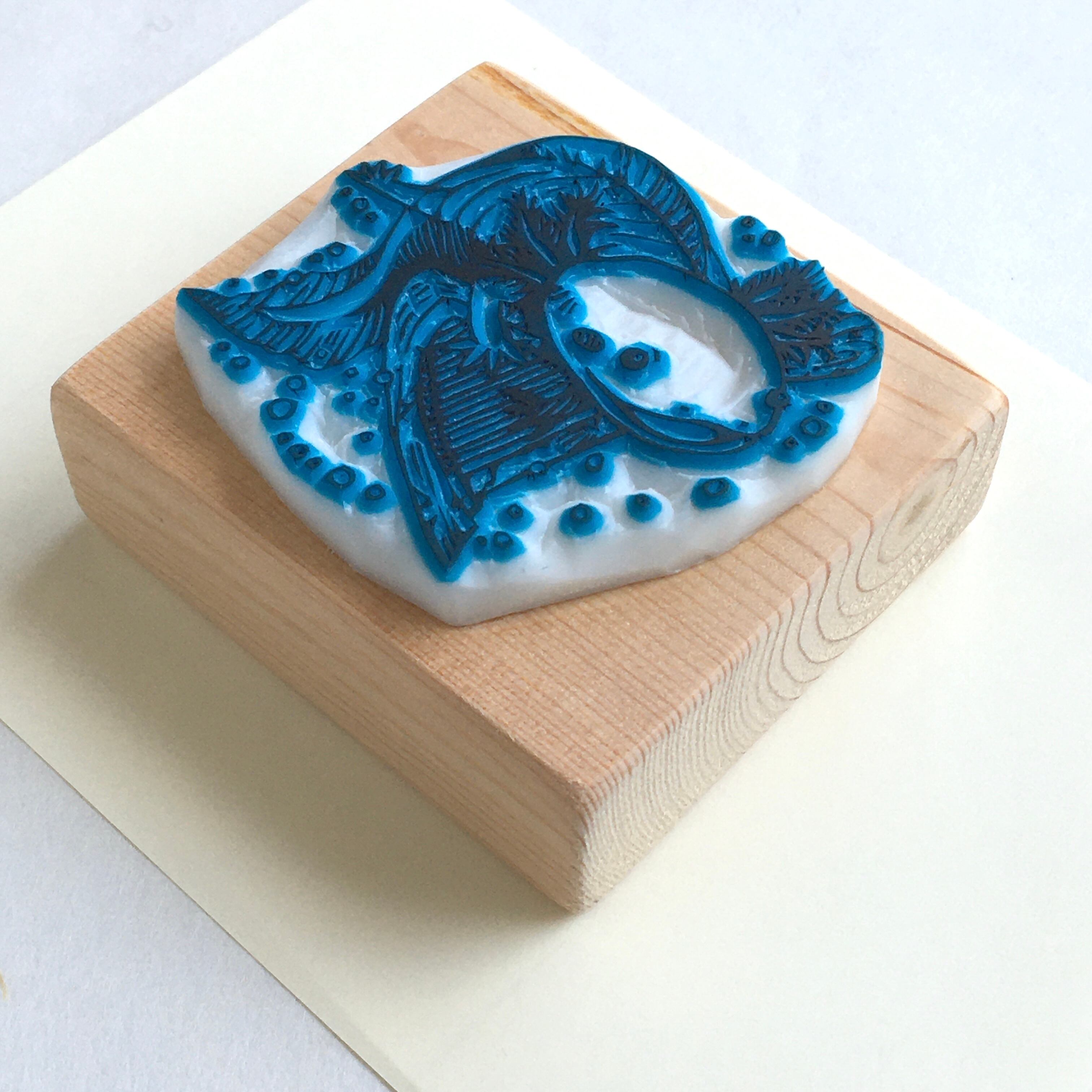 ※製作過程における試し捺しなどのため、消しゴム板にインクが残っています。ご了承ください。
