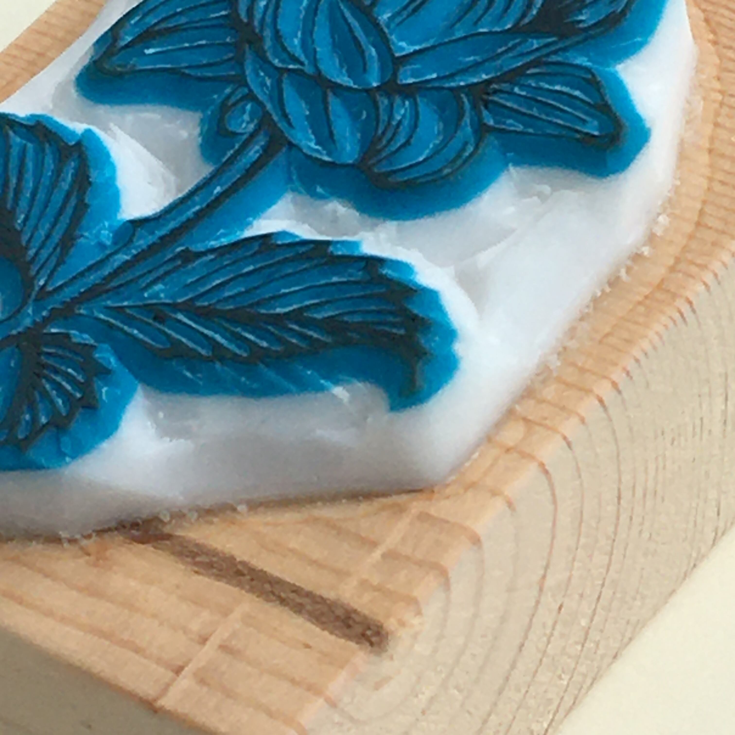 ※製作過程における試し捺しなどのため、消しゴム板にインクが残っています。ご了承ください。