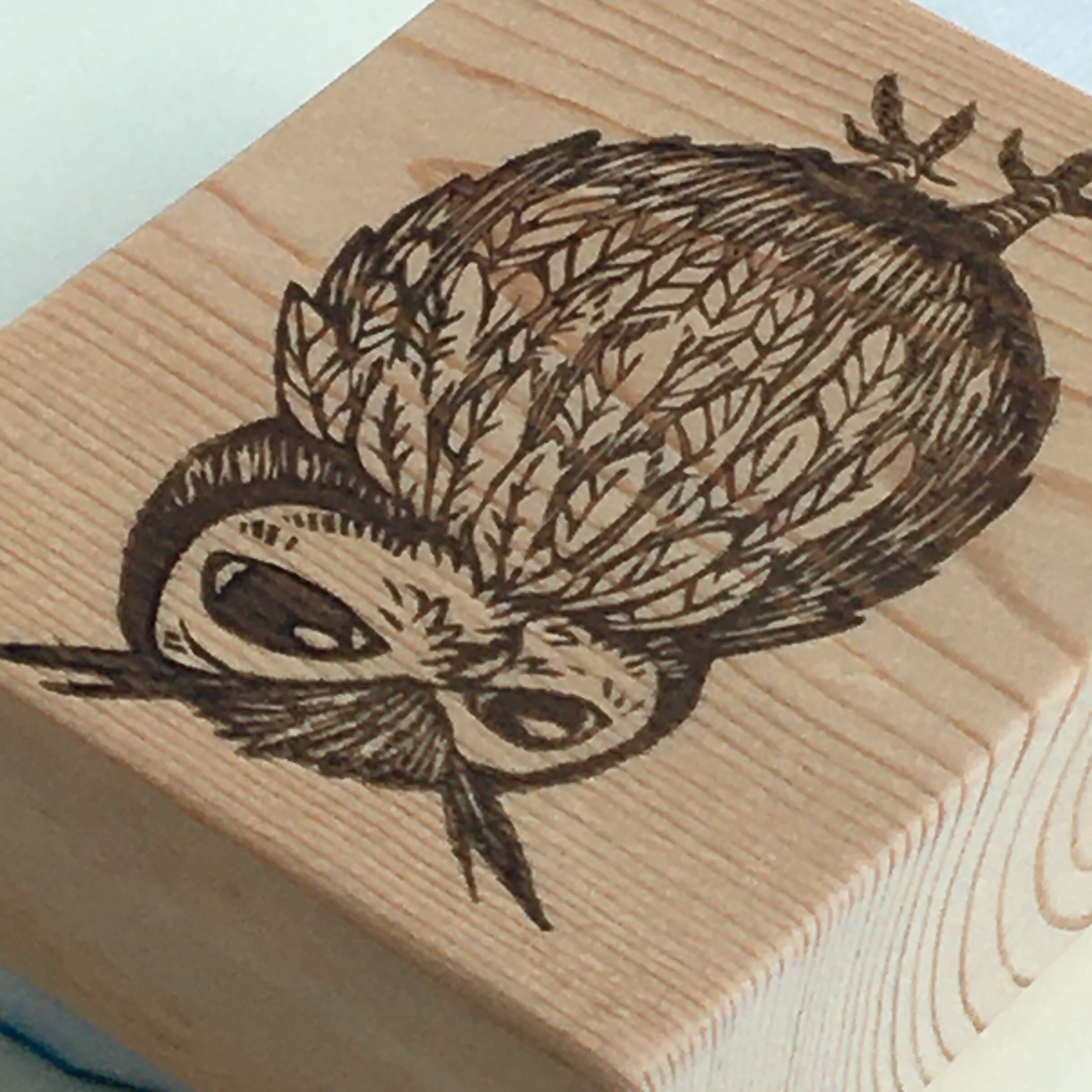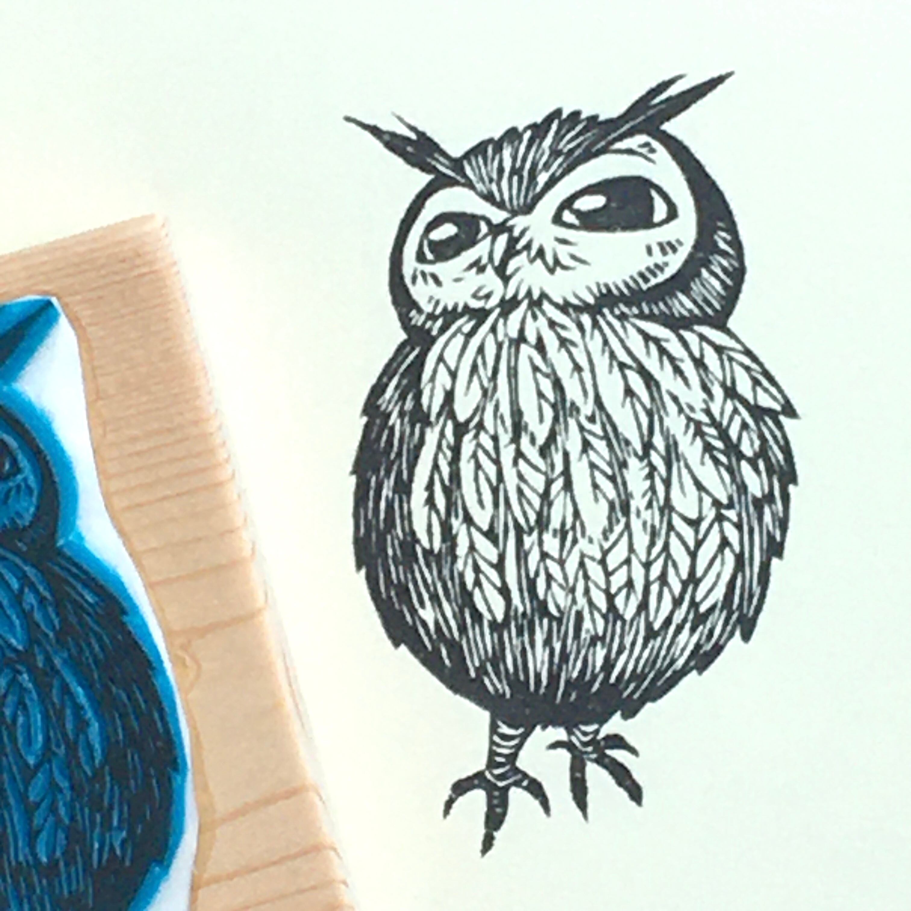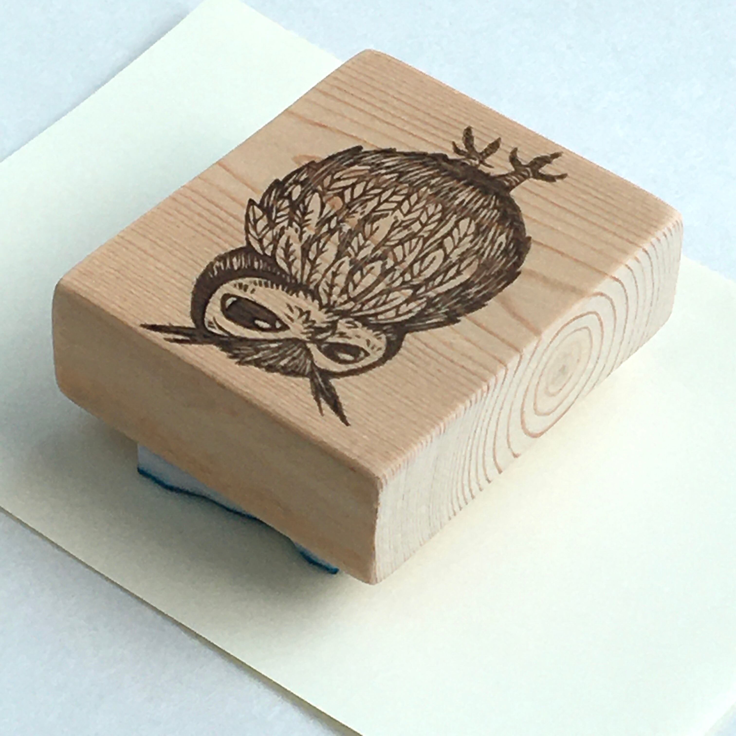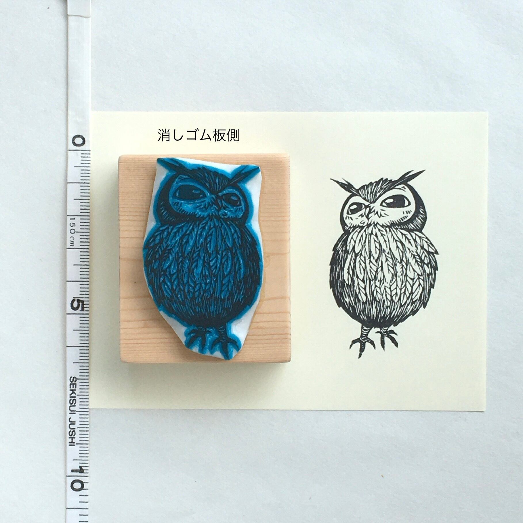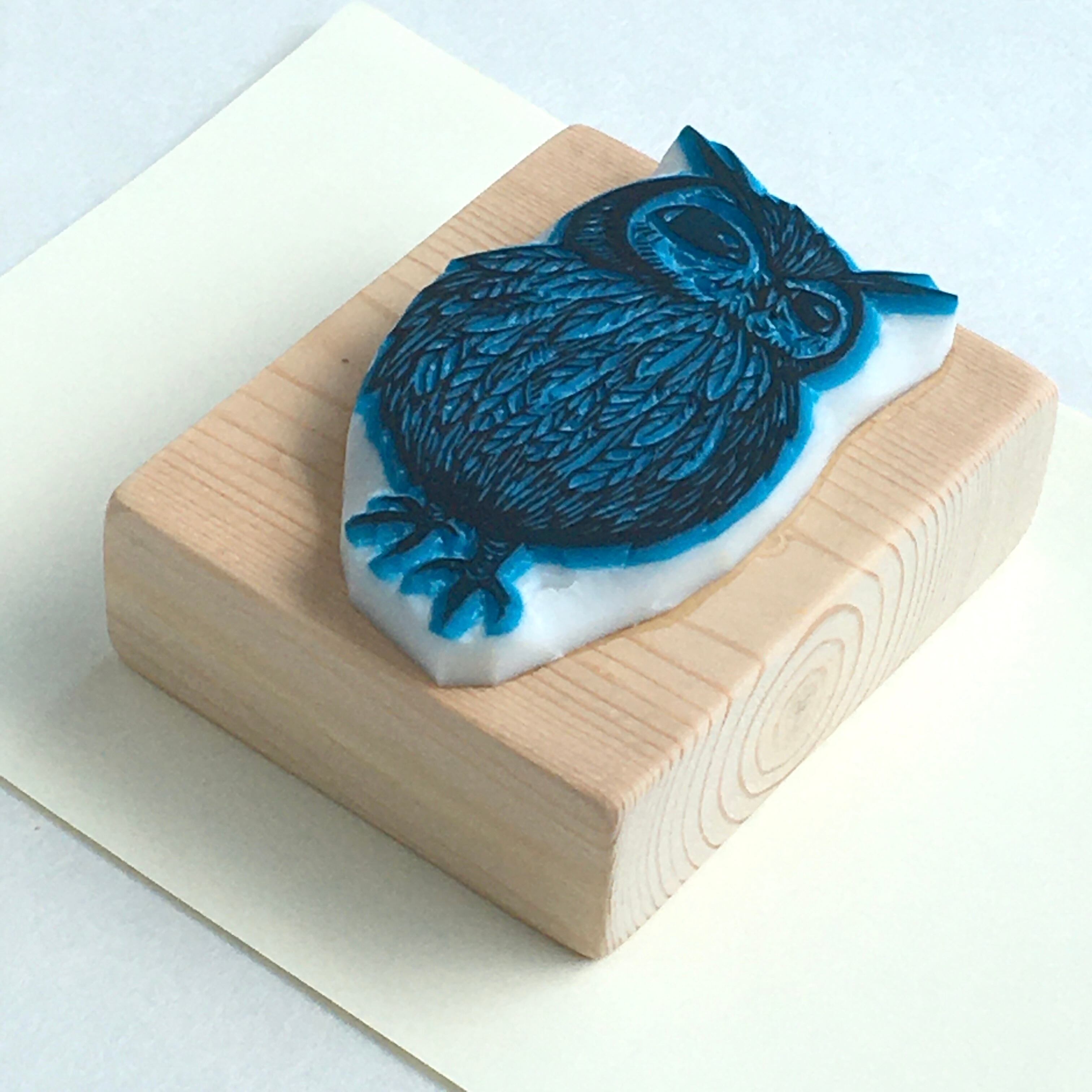 もふもふミミズクの消しゴムはんこです。