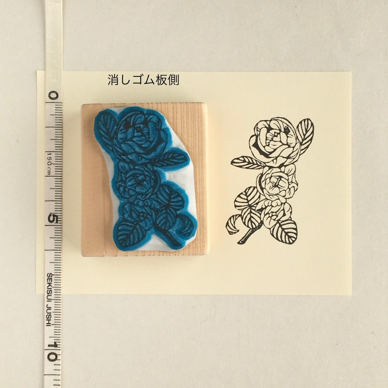 ※製作過程における試し捺しなどのため、消しゴム板にインクが残っています。ご了承ください。