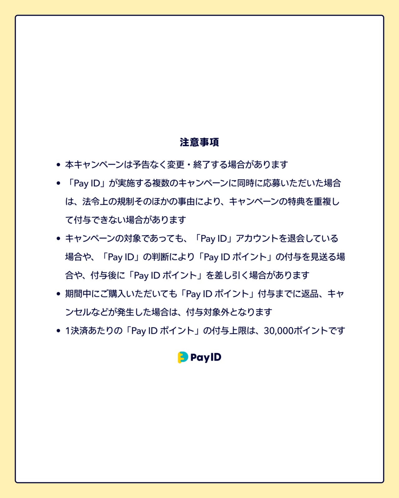 「Pay ID ポイント」5%大還元祭♪(上限:1決済あたり30,000ポイント)