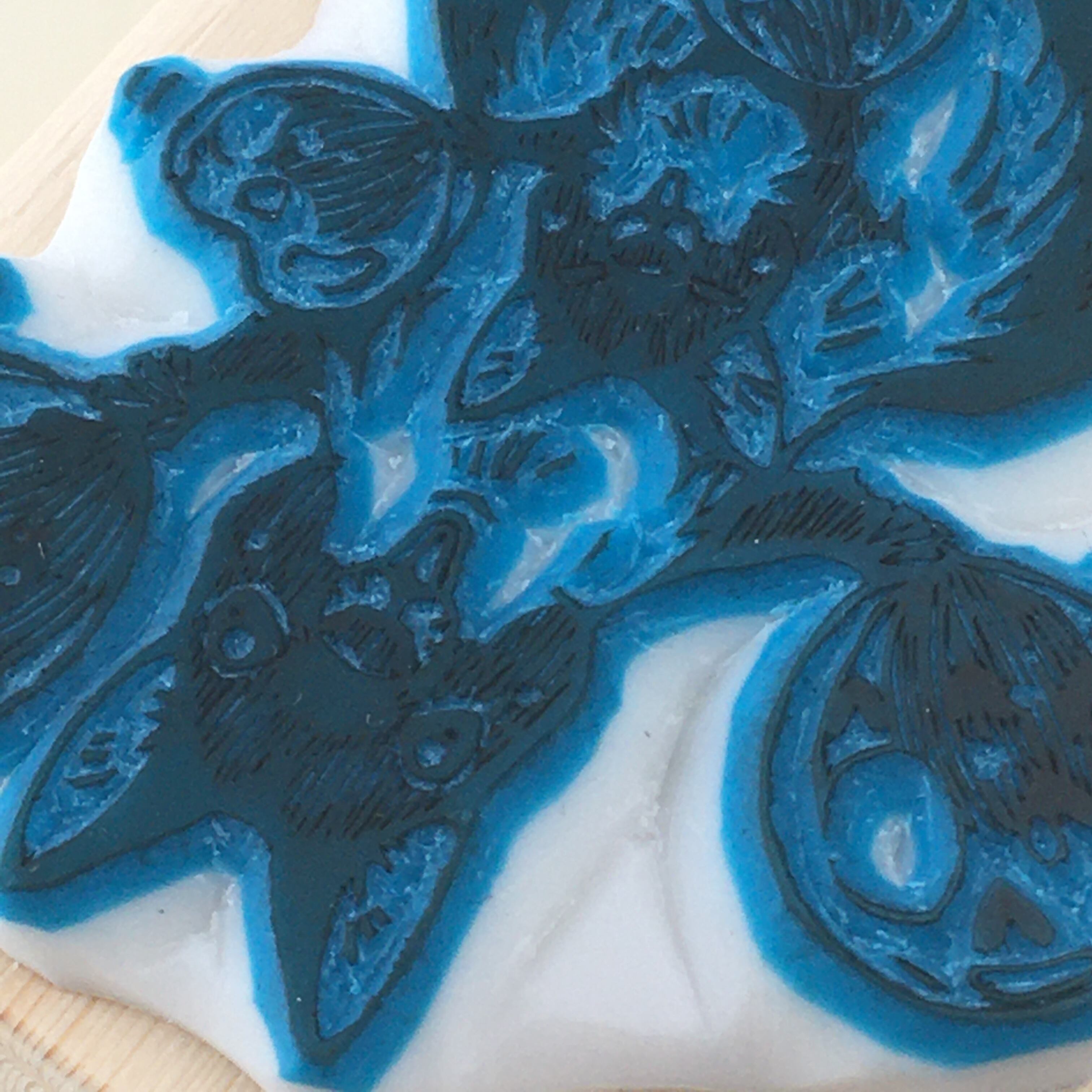※製作過程における試し捺しなどのため、消しゴム板にインクが残っています。ご了承ください。